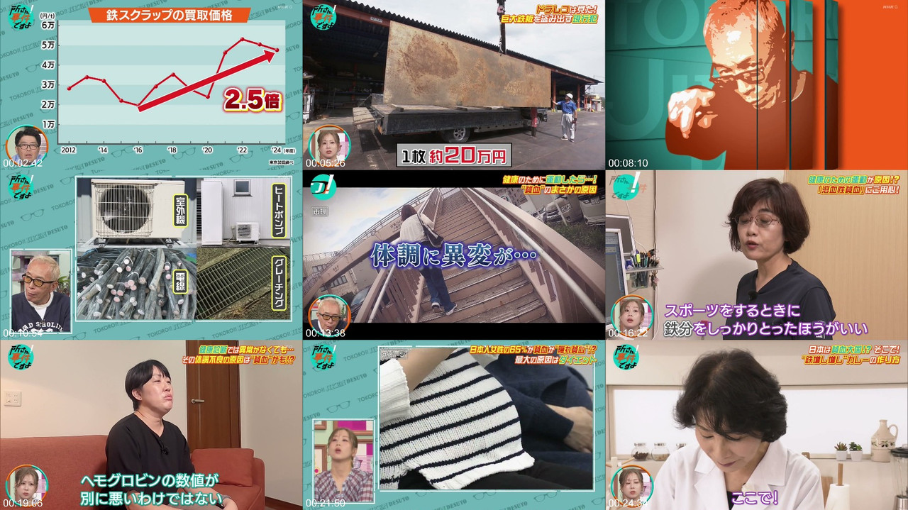 The show features hosts George Tokoro and Kanoa Kimura, with guests Takahiro Suzuki, Shizuka Daikyo, and Sho Koide, and narrator Kotaro Yoshida. The episode discusses the recent theft of air conditioning outdoor units, with eight units disappearing in one night, and residents reporting suspicious noises. The show also covers other thefts, including guardrails and massive iron plates. Additionally, the program highlights the issue of iron deficiency among Japanese women, with 20% suffering from anemia and 40% from "hidden anemia", and provides tips on how to increase iron intake. The episode is a mix of information, talk variety, and social documentary, covering topics such as everyday life, social issues, and current events #IronDeficiency #TheftPrevention #JapaneseWomen #HealthTips #SocialIssues #EverydayLife #CurrentEvents #TalkShow