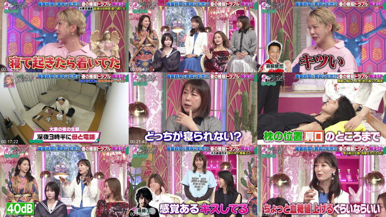 The show "Ueda to Onna ga Hoeru Yoru" features a special edition focused on sleep troubles, where the hosts and guests discuss their sleep habits and share tips for improvement. Ano reveals that she stays up all night before early morning work due to her fear of oversleeping, while Ourin simulates her dreams to achieve her desires. Reni Takagi, a short sleeper, prioritizes her own time on days off by sleeping only two hours, whereas long sleeper Shizuka Oya can sleep through entire flights. The show also features sleep improvement instructor Mariko Kobayashi, who shares effective techniques such as the "Aloha breathing method" and provides guidance on choosing the right pillow. Other topics include the best timing for sleep after bathing, the impact of hunger and fullness on sleep quality, and the sleep habits of guests like TAKAHIRO and Kiyoko Kubo. #SleepTroubles #LongSleepers #ShortSleepers #SleepImprovement #SleepQualityMatters #DreamSimulation #AlohaBreathingMethod #SleepHabits